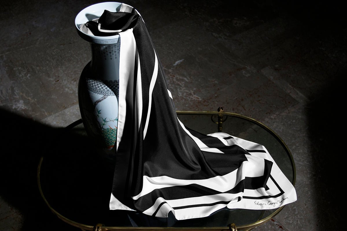 B&W Perspective Square - scarf 90 - silk scarf - FGTONSILK